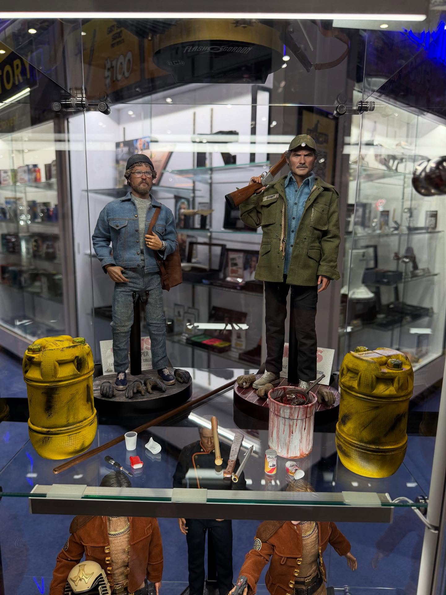 Und endlich kümmert sich ein Hersteller mal um Jaws!!! und zeigte Quint & Hooper. Chief Brody wird es leider nicht geben, weil Roy Scheiders Witwe realistische Darstellungen ihres verstorbenen Mannes leider untersagt.