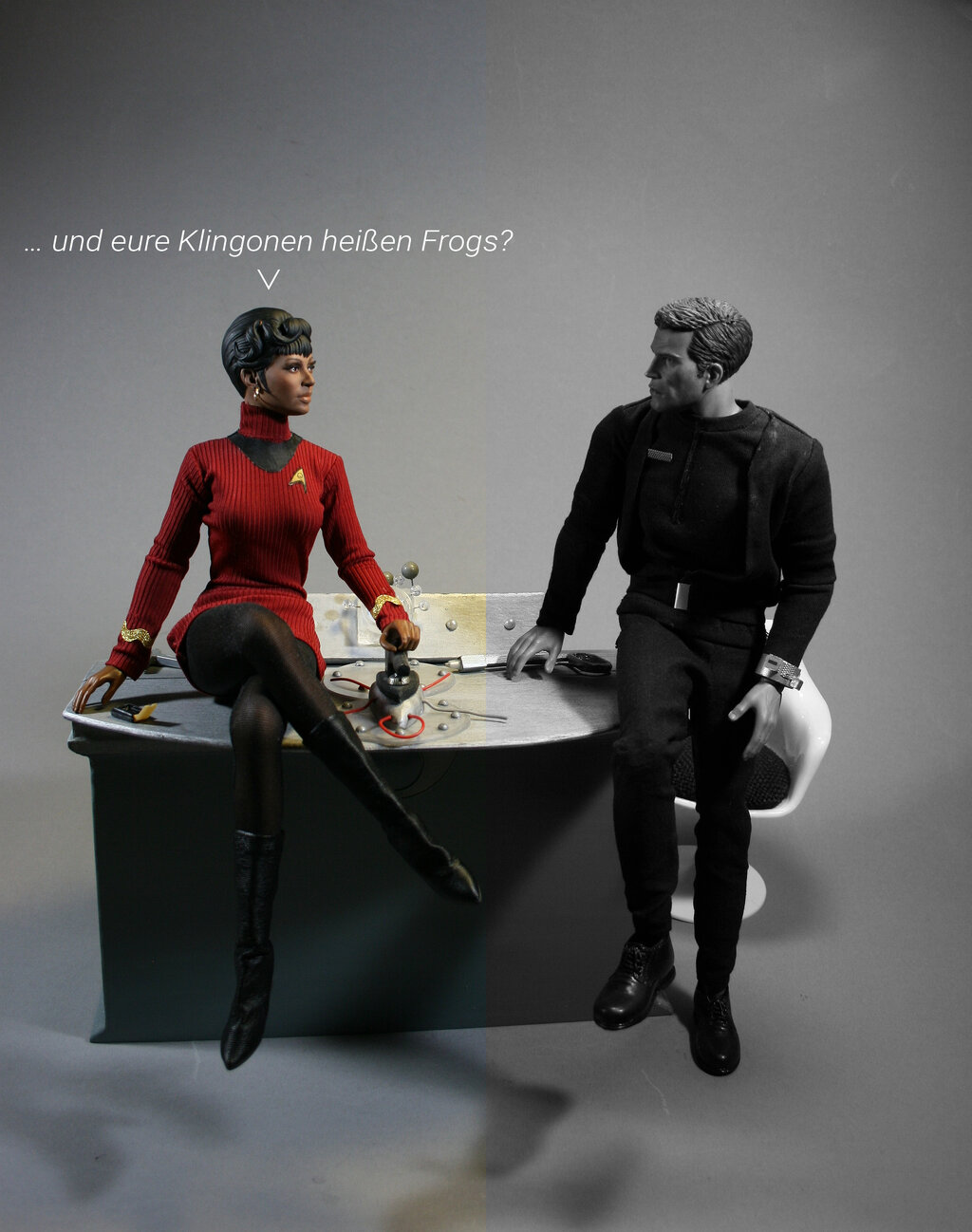 Unser Foto des Monats Award geht an Arbeitstreffen von russel1 hier treffen zwei legendäre Sci-Fi Serien der späten 1960er Jahre aufeinander, verkörpert durch Kommunikationsoffizier Lt. Uhura von der Enterprise und Commander Cliff Allister McLane des schnellen Raumkreuzers Orion aus der deutschen Serie Raumpatrouille.