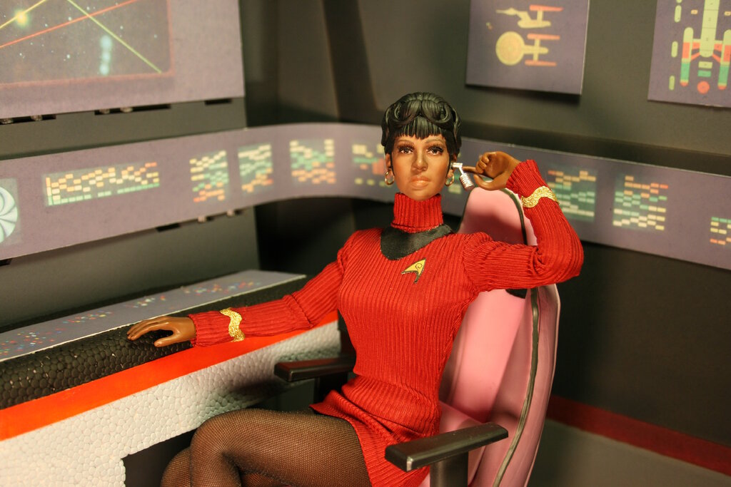 Das Bild Lt. Uhura zeigt sie dann bei ihrem Job auf der Enterprise in einer ihrer klassischen Posen.
