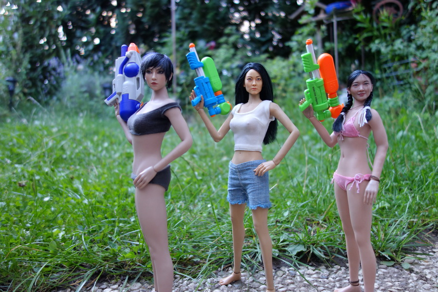 Yui, Lien und Frau Li haben die Teile in die Finger gekriegt…und ab ging es raus ins Grüne. So haben sich die Damen während der Affenhitze Abkühlung verschafft. Eine schön in Szene gesetzte Wasserschlacht und ein toller ACTION Fund.
